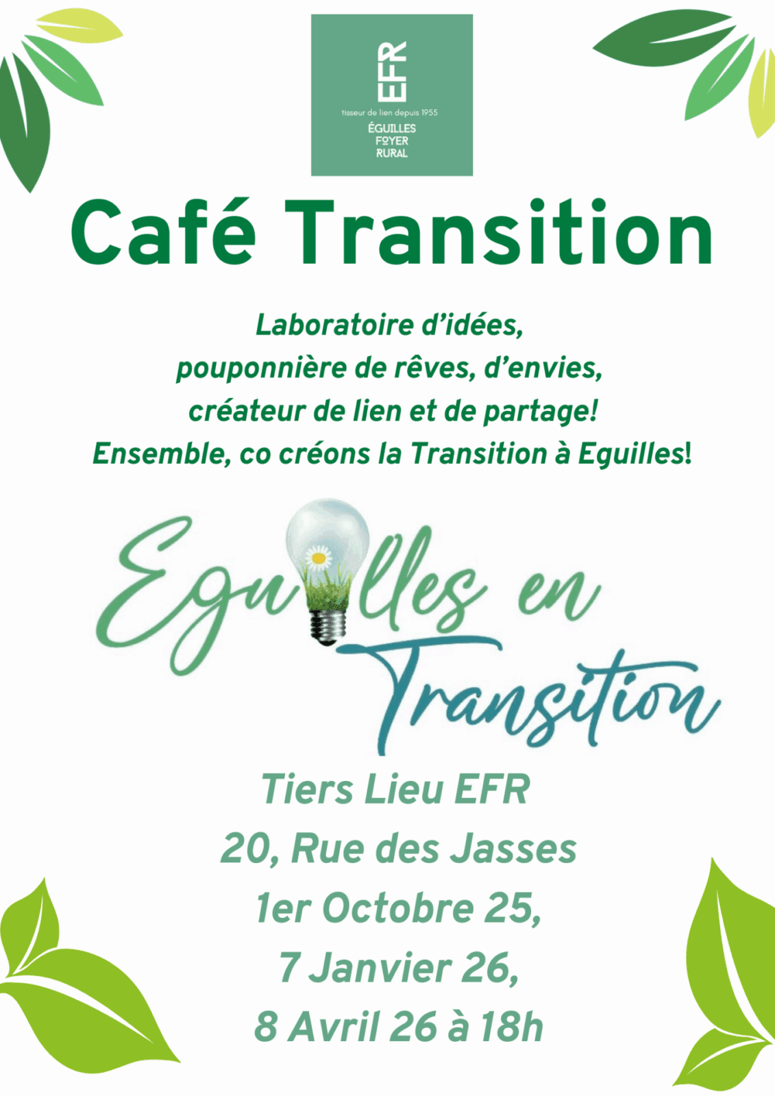 Bloquez les dates si vous n’êtes encore jamais venus à l’un de nos cafés transition !