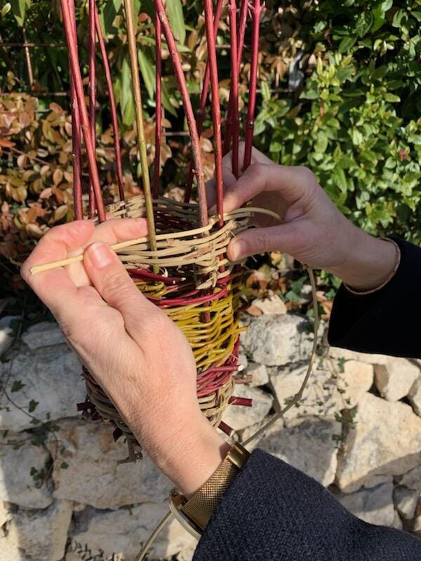 Thème de la matinée : créer une corbeille en matériaux naturels.
