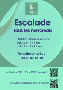 Lien pour s’inscrire à l’essai ou à l’activité : https://www.helloasso.com/associations/eguilles-foyer-rural/adhesions/escalade