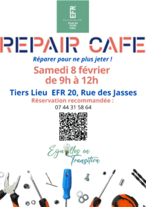 Repair café du 8 février 2025 de 9h à 12h Tiers Lieu EFR